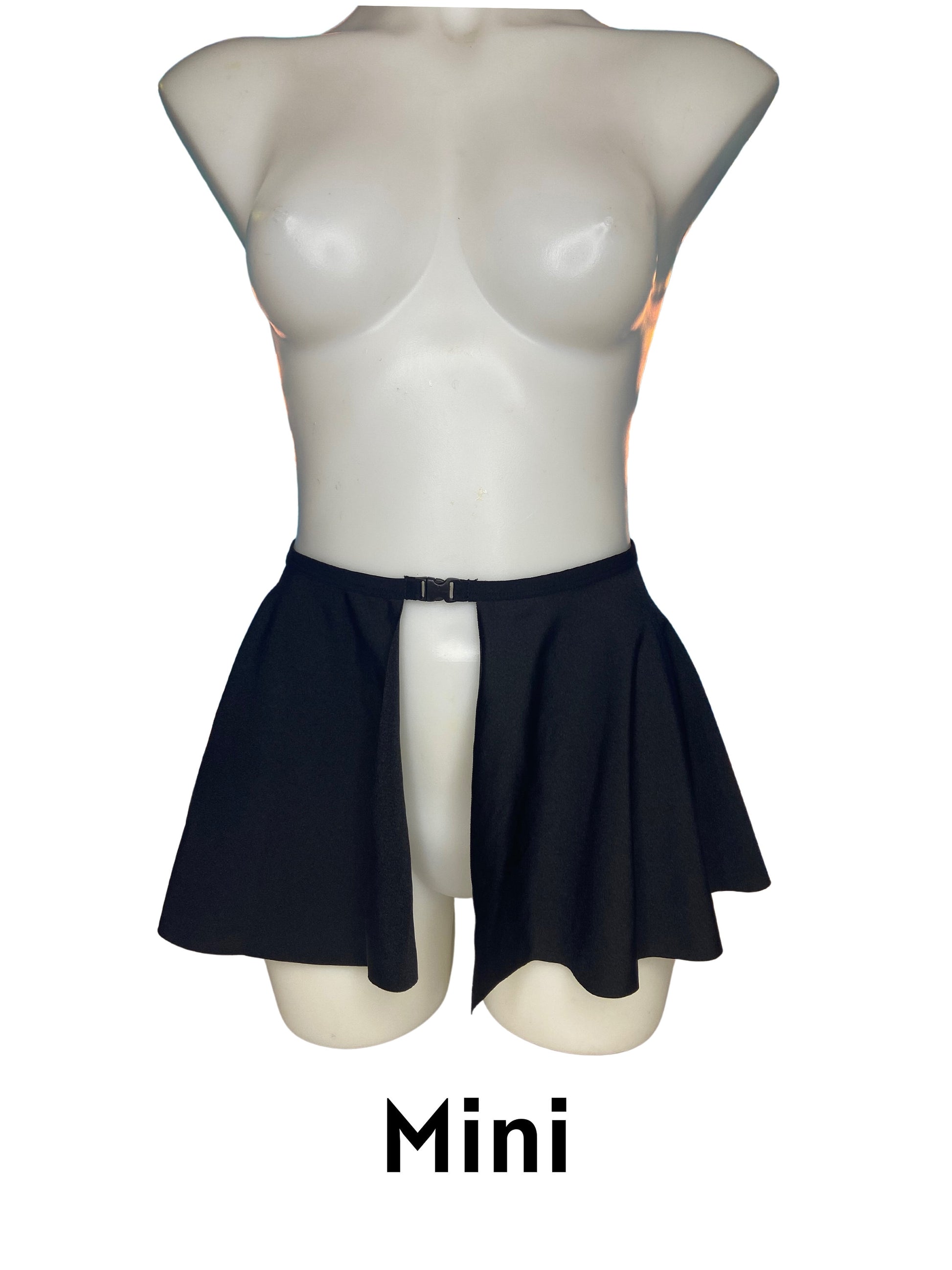 Pictures of the skirt in the listing fabric is our Ultra Mini skirt. The Mini and Short skirts are shown in a black fabric.