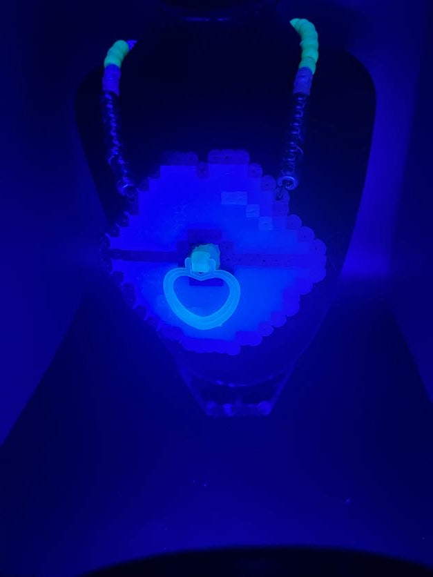 The pacifier is one of the staples of the rave scene dating back decades. In order to enhance the pacifier I have added my own personal perler touch. Each one of the different perler pacifiers are made from glow in the dark beads and come with a flashing light pacifier to light up the night.
